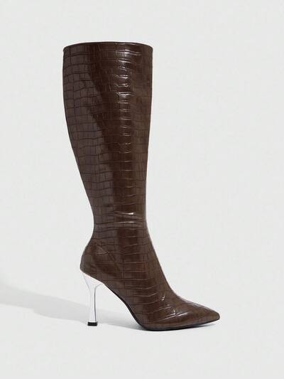 Women's Fashion High Heel Crocodile Embossed Chelsea Ankle Boots-65%