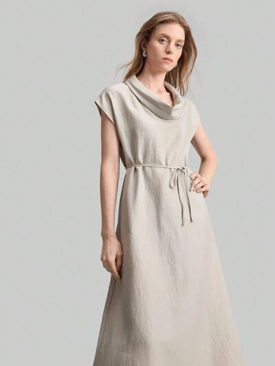 Women's Long Tie-Up Straight Batwing Sleeve Dress Old Money
