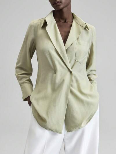 2026 Spring/Summer New Asymmetric Pleated Collar Basic Long Sleeve Minimalist Urban Business Casual Blouse, Women Office Wear, Outdoor, Party