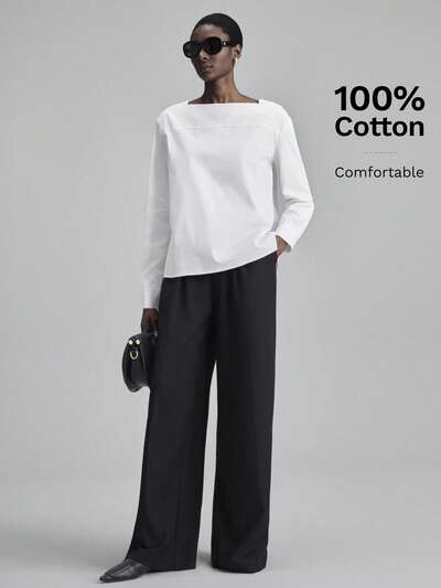 2026SS Women's White Long Sleeve Loose Elegant Minimalist Top, Casual Holiday Outfit