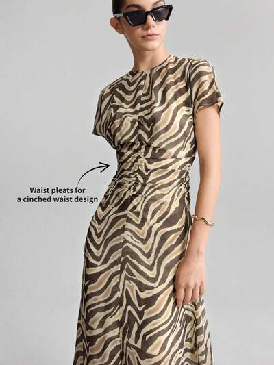 Women's Spring/Summer Dress, Women's Comfortable Casual Wear, Women's Apparel, Elegant Urban Style, Printed Dress, Zebra Print, Short Sleeve, Round Neck, Women's Long Dress, Business Casual, Flared Skirt, Spring/Summer Clothing, 2025 New Arrival-36%