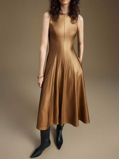 2025 Autumn/Winter New Arrival Wedding Guest Dress, Business CasualAll-Matchc Versatile Modern Urban Style Loose Fit, Suitable For Daily Wear, Halloween, Christmas, Elegant Gold Pearlescent Coated Fabric, Flared Midi Dress, Business Commute, Daily, New Year