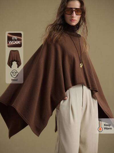 Wool Material Elegant Style, Minimalist Design, Wool Blend Material, Brown Color, Long Sleeve, Poncho Silhouette, Oversized Fit, Women's Sweater, Women's Poncho Sweater, Autumn Clothing, Casual Everyday Wear, Business Casual High-End, Elegant, Old-Fashioned Cruise Clothing Versatile And Comfortable Wool Sweater For Fall And Winter High-End, Elegant, Old-Fashioned Cruise Clothing Street Style, Sophisticated, Simple And Cool