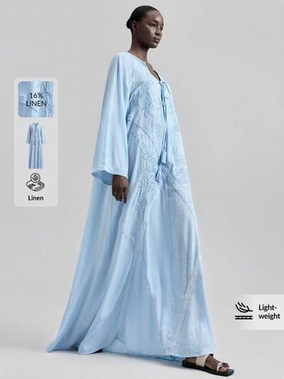 2026SS New Arrival Women's Long Dress, Blue Embroidery, Woven Fabric, Loose Fit, Spring/Summer