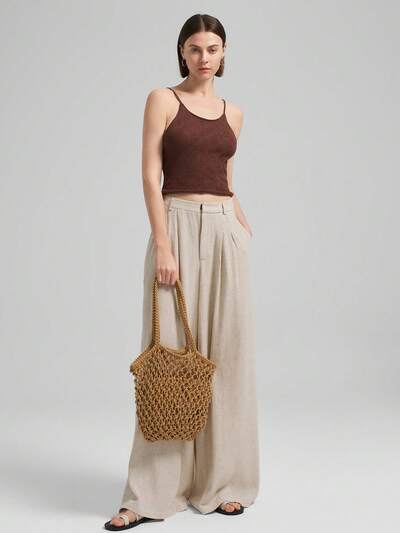 2025 Women's Summer Solid Color Knitted Camisole Top, Casual And Commuting, Simple Base Layer, Caramel Brown Knit Tank Top, Fashionable City Style