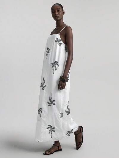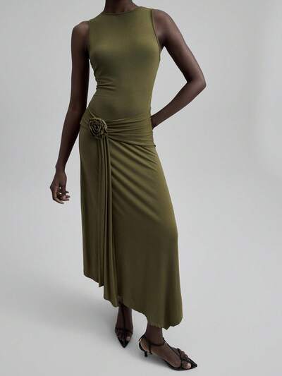 Women's 2025 Summer Sleeveless Solid Color Dress With 3D Floral Decor, Fashionable For Commuting, Suitable For Summer, Elegant & Romantic, Suitable For Parties, Weddings, Fashionable Urban, Urban Commuting, Vacation, Island Resort, Music Festival