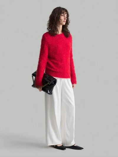 Women's Round Neck Long Sleeve Sweater With 8% Cashmere, Gray Color With Twist Floral Design, Round Neck Pullover Sweater In Chunky Knit, Spring Apparel For Valentine's Day