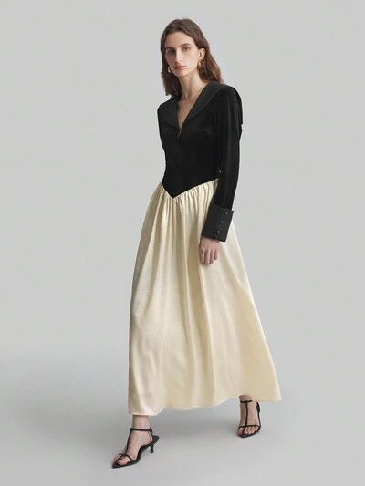 Women's New 2025 V-Neck Long Sleeve Splice Ruched Color Block Long Dress, For Valentine's Day, Spring-26%