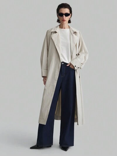 Women's Long Sleeve Batwing Sleeve Trench Coat, Beige Outerwear Jacket For Everyday Wear, Holiday , Winter Season