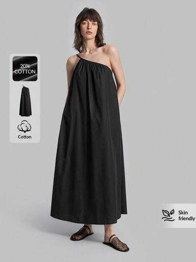 2026 Spring/Summer Women's Long Solid Color One-Shoulder Sleeveless Loose Dress, Business Casual Vintage Elegant Versatile, Suitable For Urban Vacation, Island Music Festival, Independence Day, 's Day Beach Holiday, Graduation, Office-23%