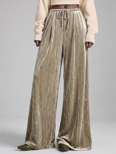 2026Women's Versatile Velvet Fabric Comfortable Soft Straight Leg Pants With Front Pleats And Elastic Waistband, Suitable For Urban Commute, Business, Casual, Office Wear, Elegant For Christmas, Party High-End, Elegant, Old-Fashioned Cruise Attire For Wedding Guests Modern Urban Casual Fashion Business Casual Women's Office Wear Low-Key Old Money Style Effortless Temperament High-End Urban Commuting High-Quality Airport Women's Wear High-End Material Gold Pants Wide Leg Pants Pleated Pants Women-32%