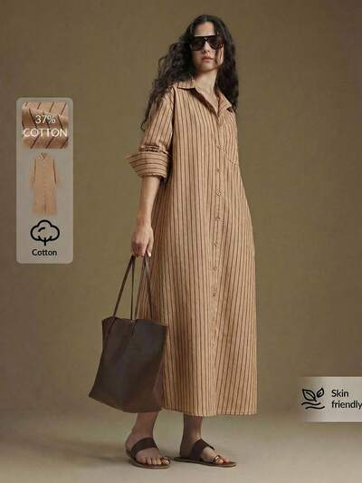 Women's Striped Shirt Dress, Loose Long Casual Dress For Urban Commute, Business, Vacation, Beach, Wedding Guest, Holiday, Office Wear-24%
