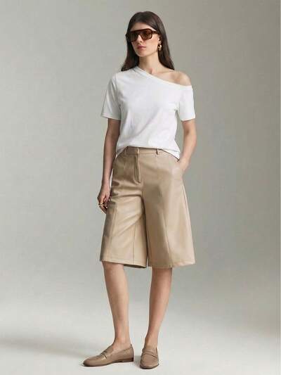 2026 Women's PU Leather Wide Leg 3/4 Shorts, Urban Commute Business Casual, Elegant For Office, Teacher, Vacation Khaki Shorts Women Bermuda Shorts For Women Leather Shorts For Women Women's Long Shorts Modern Urban Casual Fashion Business Casual Women's Office Wear Low-Key Old Money Style Effortless Temperament High-End Urban Commuting High-Quality Airport Women's Wear High-End Material