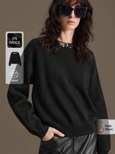 Women's Comfortable Warm Yarn Wool Blend Crew Neck Loose Drop Shoulder Shiny Knit Sweater, Suitable For Christmas Party, Autumn/Winter, Chic Urban Casual Business Wear Christmas Evening Clothes New Year Atmosphere Holiday Party Women's Clothing Versatile And Comfortable Wool Sweater For Fall And Winter Modern Urban Casual Fashion Business Casual Women's Office Wear Low-Key Old Money Style Effortless Temperament High-End Urban Commuting High-Quality Airport Women's Wear High-End Material New Year