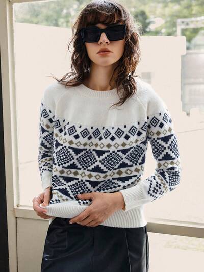 Loose Fit Jacquard Knit Crew Neck Pullover Sweater Modern Urban Casual Fashion Business Casual Women's Office Wear Low-Key Old Money Style Effortless Temperament High-End Urban Commuting High-Quality Airport Women's Wear High-End Material Modern Urban Casual Fashion Business Casual Women's Office Wear Low-Key Old Money Style Effortless Temperament High-End Urban Commuting High-Quality Airport Women's Wear High-End Material Versatile And Comfortable Sweater For Fall And Winter Christmas Evening Clothes New Year Atmosphere Holiday Party Women's Clothing