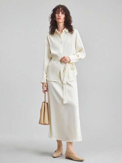 2025 Women's New 2000s Retro Country Style Office Business Casual Shirt, Autumn Seasonal Change, Solid Color Drop Shoulder Long Sleeve Single-Breasted Blouse For School, Office, Date, Outing, Airport, Party