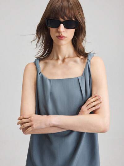2pcs/Set Women Casual Solid Color Sleeveless Top And Shorts