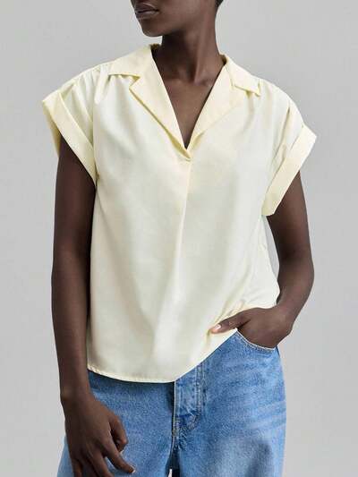 2025 New Summer Suitable For Women's Autumn Apparel, American Independence Day, School Uniforms, 2000s Style Women's Country, Women's Country, Women Teacher's, Party, Solid Color Minimalist Button Down Short Sleeve Blouses