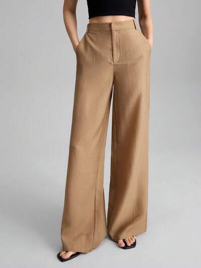 Women's Four-Season Apricot Long-Sleeved Single-Breasted Two Pieces Suit, Refreshing Shirt And Pants Casual Two Pieces Suit, Minimalist Style Two Pieces Suit