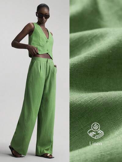 2026 Spring/Summer New Women's 2-Piece Set, Includes Linen V-Neck Vest And Pants Suit, Business Casual Office Low-Key Vintage Style, Suitable For Tea Party, Vacation, Wedding Modern Urban Casual Fashion Business Casual Women's Office Wear Low-Key Old Money Style Effortless Temperament High-End Urban Commuting High-Quality Airport Women's Wear High-End Material Modern Urban Casual Fashion Business Casual Women's Office Wear Low-Key Old Money Style Effortless Temperament High-End Urban Commuting