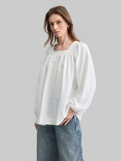 Women Square Collar Raglan Sleeve Long Sleeve Loose Casual Blouse