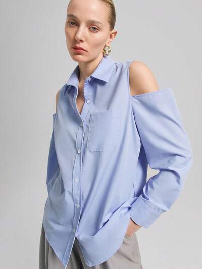 2025 Women Off Shoulder Long Sleeve Single Button Casual Pocket Shirt