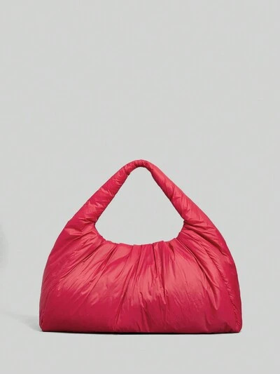 Women Plain Minimalist Red Shoulder Bag, Casual Daily Storage Handbag-60%