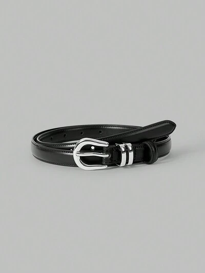 1pc Basics Black Stitching Casual Waist Belt, Suitable For Daily Commute-16%