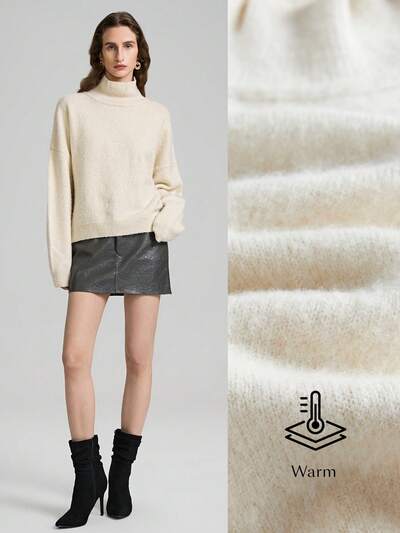 Long Sleeve Turtleneck Old Money Style Sweater, Women Fuzzy Cashmere Feel Sweater, Cozy Homewear, Milky White Color, Suitable For Spring18K Gold Plated Red Enamel Heart Pendant Necklace